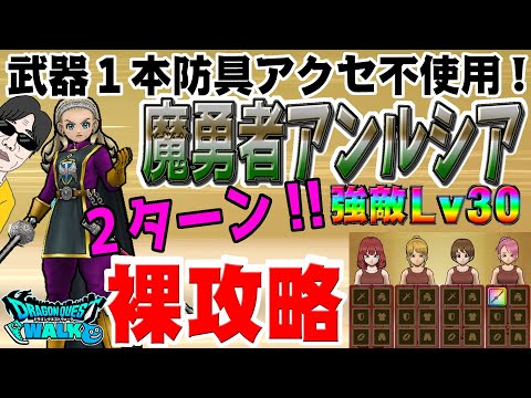 【ドラクエウォーク】武器1本のみでたった2ターン!!強敵Lv30魔勇者アンルシアを防具・アクセ・アイテム・回復無しで裸攻略!!