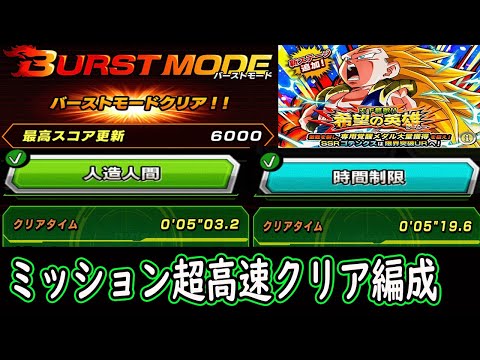 【ドッカンバトル】3ゴテンクスバーストモード6000ミッション「人造人間」「時間制限」両方超高速5分クリア編成!