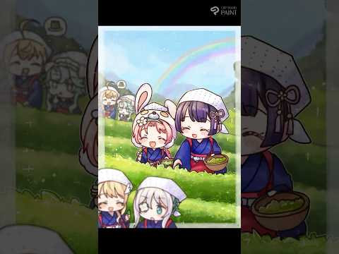 プリコネRの絵本風絵柄シリーズのお茶娘🍵なミミちゃんとリリちゃんのファンアートです。 アネモネちゃんクリアちゃん、ペコちゃんプレシアちゃんもいるよ #イラスト #イラストメイキング #プリコネr